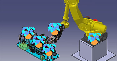 - チェックと調整: 初期設計完了後、3D設計チームとロボット検査担当者がロボットの姿勢、干渉、負荷などをチェックし、必要に応じて調整・最適化を行う。